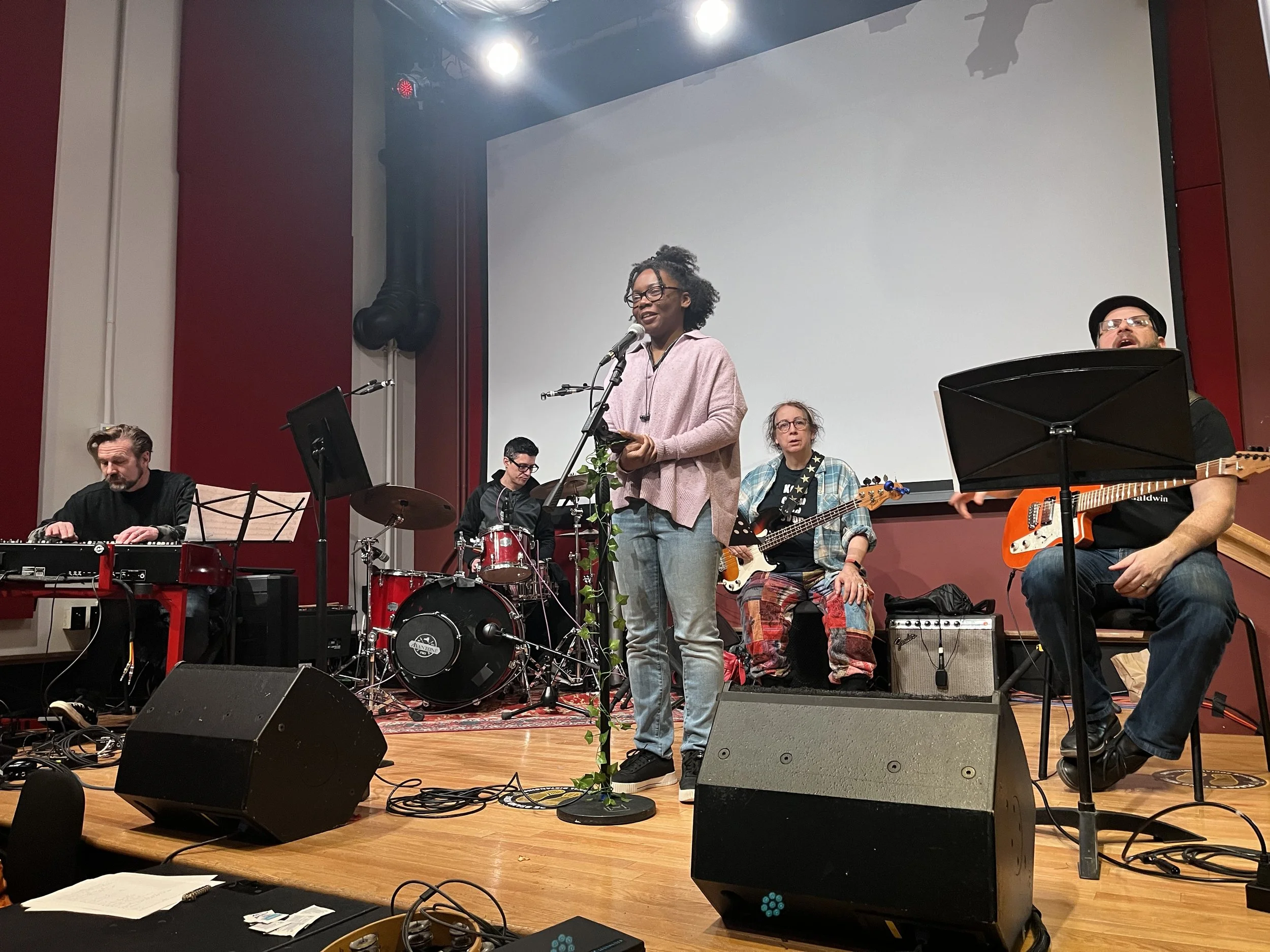 Juliana Castrillón (voice), Emy Díaz (voice), Ce’Nedra Morales (voice), Corinne Pelkie (violin), Ana Carolina Seixas-Peronico (electric bass), Emily Pinkerton (voice) with support from María Carvajal and Kyla Silk.